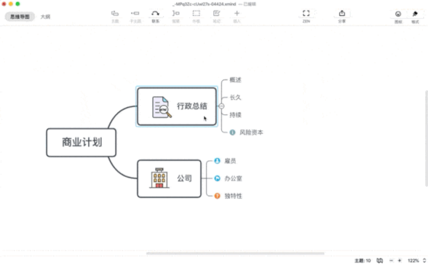 该功能可以一键折叠 / 展开子分支,当我们在演示思维导图时,还能逐级展开导图内容,使整个演示逻辑更加清晰有条理。