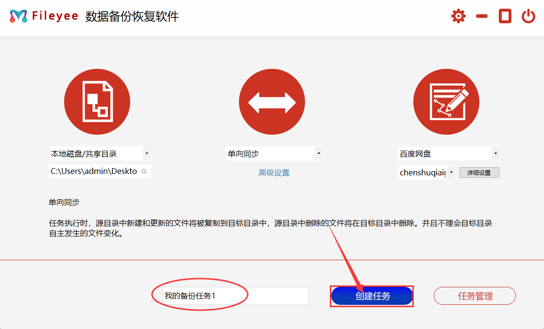 第3步,设置备份任务名称,然后点击“创建任务”按钮,创建备份任务,创建成功后会自动跳转到任务管理页面。