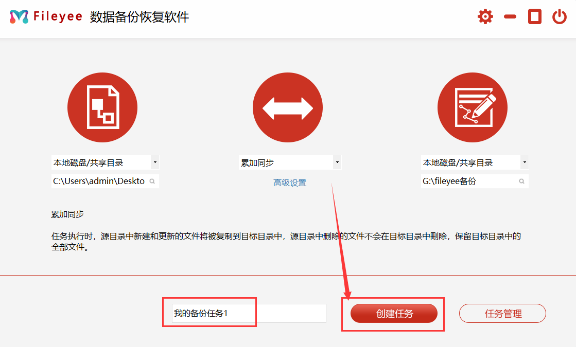 步骤3,输入备份任务的名称,点击【创建任务】按钮创建备份任务,然后软件会跳转到任务管理页面。