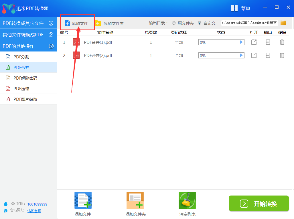 第三步,点击右下角的【开始转换】绿色按钮,这样软件就开始了PDF文件合并操作,我们只需等待即可。