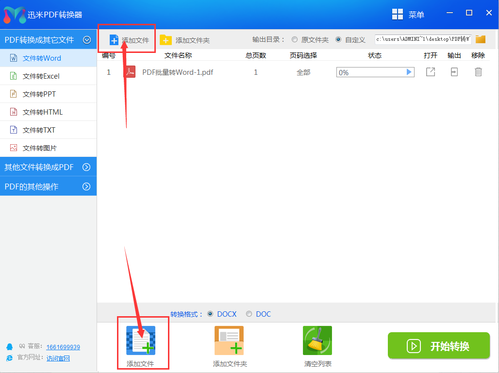 步骤1,打开迅米PDF转换器,点击选择左侧功能列表中最上面的【文件转Word】功能,从这里进行批量转换操作。