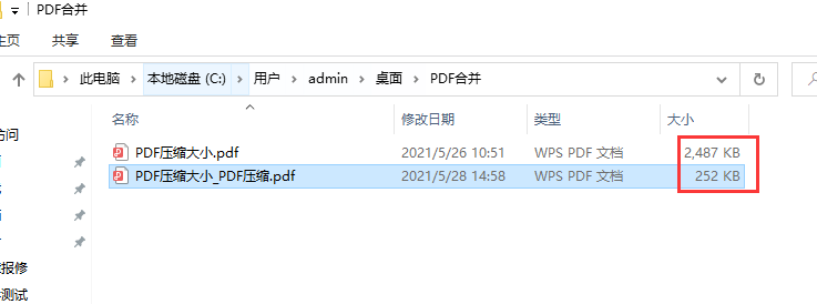 步骤5,从我们的案例中可以看到,原本2487KB的PDF文件压缩变小后只有252KB,压缩效果非常好。