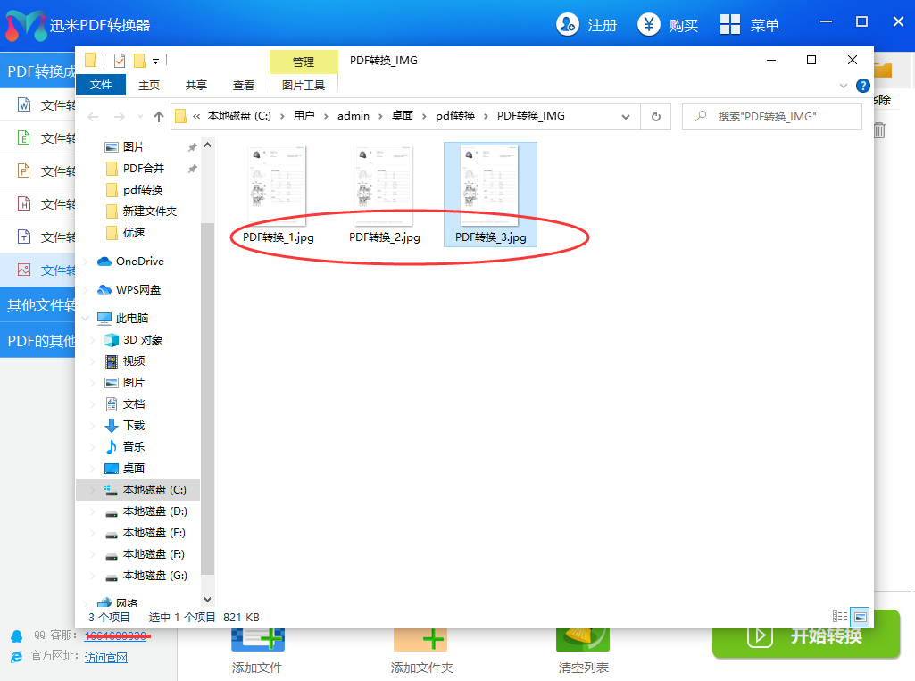 步骤5,从我的案例中可以看出,一个3页面的pdf图片被成功的转换成了3张jpg图片。
