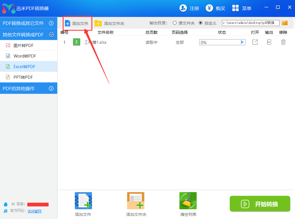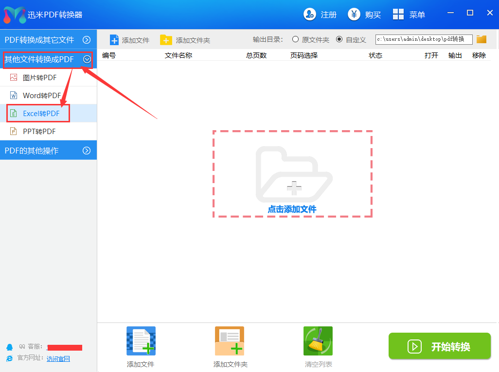 步骤一:下载迅米PDF转换器软件,安装到电脑之后双击打开。首先,我们可以选择对应的转换功能选项,也就是选择“其它文件转PDF”功能当中的“Excel转PDF”选项;