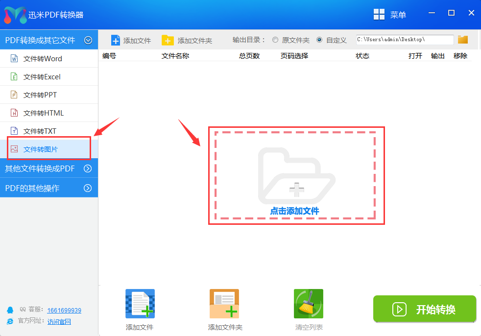 步骤2、打开迅米PDF转换器软件,在软件左侧功能列表中找到“文件转图片”并点击,在右边点击添加需要转换成图片的PDF文件,用户可以同时添加多个文件,同时转换效果更好。