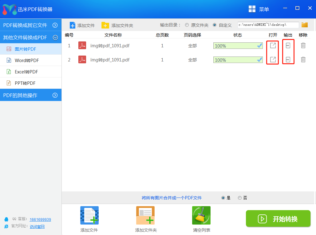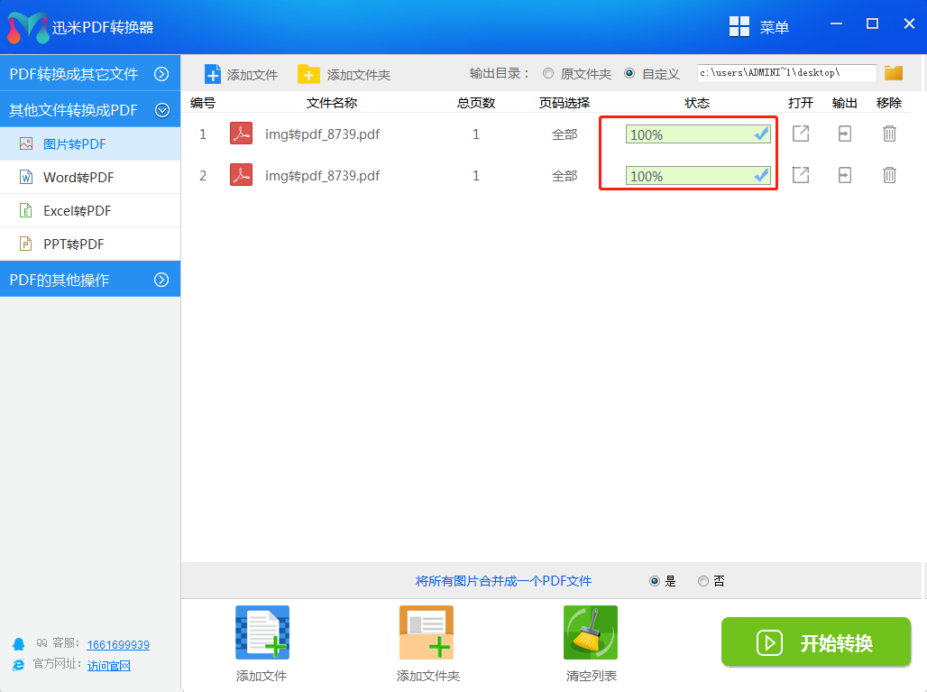 步骤4、放所有图片名称右侧的进度条变成100%时,说明图片全部转换成了PDF。