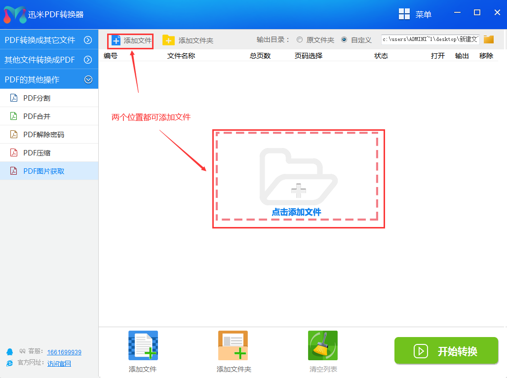 第3步:添加PDF文件,我们通过点击两个位置中的任何一个添加文件,如下图所示。并且用户可以同时添加多个PDF文件。