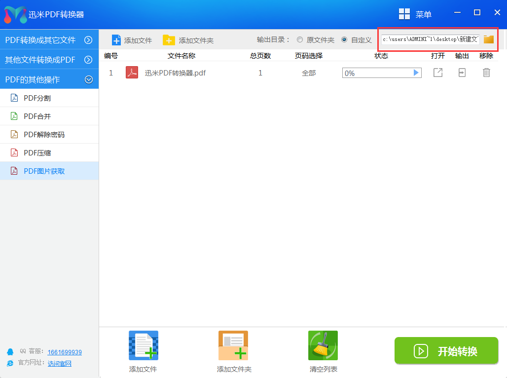 想要将PDF文件里的图片导出来有两个办法,通常大家使用的办法是先打开PDF文件,然后使用QQ截图或者微信截图工具截取图片然后另存为文件夹,但是这样的效率比较慢,而且截出来的图片会比较模糊,不清晰,那么有其他什么更好的办法吗?小编通过多年的经验为大家推荐“迅米PDF转换器”,这款工具恰巧能帮助您快速批量的将PDF文件内的图片一次性导出来。下面跟着我学习具体的操作步骤吧: